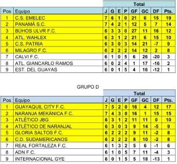 TABLA DE POSICIONES